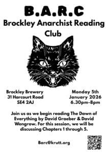 The Brockley Anarchist Reading Club is beginning our discussion of David Graeber and David Wengrow’s The Dawn of Everything: A New History of Humanity. This book fundamentally challenges the standard narrative of human history, arguing against the notion that hierarchies and the state are inevitable. Graeber and Wengrow compel us to look past the confines […] |